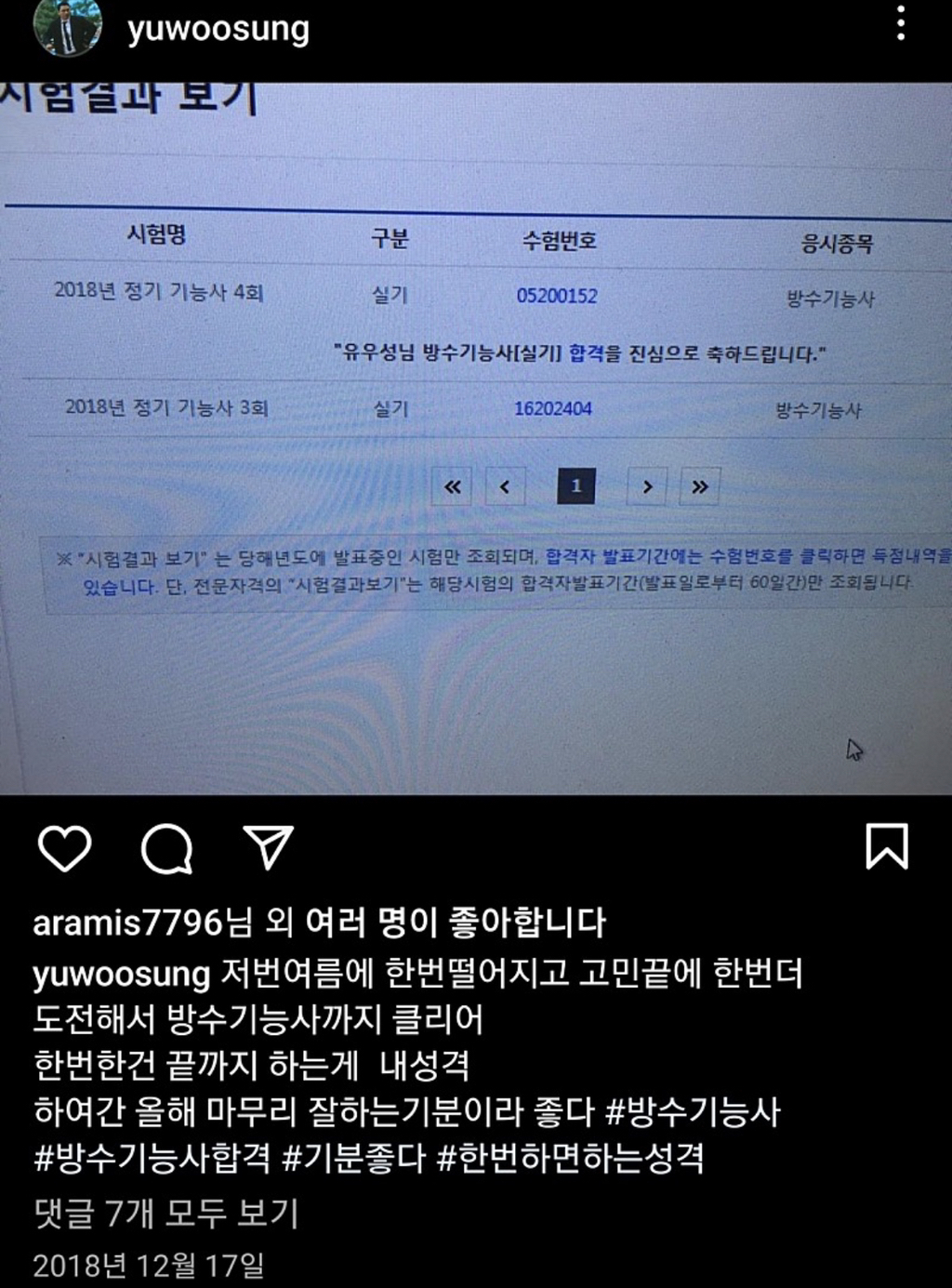 같은 해 재수끝에 방수기능사까지 클리어 ㄷㄷ